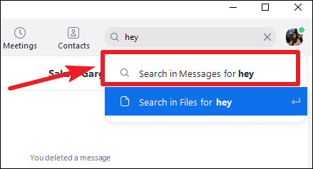 The search box you see at the top of the Zoom client no matter where you are in Zoom is quite a precious piece of real estate. You can use it to search for people or files but most importantly, messages in Zoom chats. No matter how old a message you want to find, you can do it from the search box. You can also apply filters on search results to streamline the results further, like show results only from a single chat, or messages sent by a specific person, etc.
