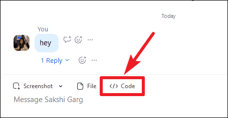 And now, when you return to your chat window, that extra ‘Code’ button will be waiting for you. You can now use the ‘Code’ button to send any code easily over the Zoom chat. You will need to download the code snippet package the first time you use the button.