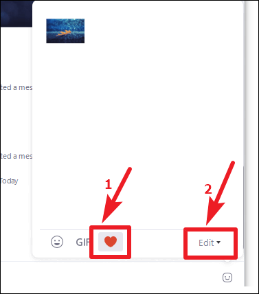 To add an image, open the emoji picker by clicking the ‘smiley face’ in the message field. Go to ‘Saved emojis’ (heart icon) and click on the ‘Edit’ menu in the lower right corner and upload images from your computer by clicking the ‘Upload emoji’ button. You can also add images from your phone similarly if you are using the phone app.