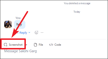 Zoom chat not only offers the feature to take a screenshot directly from the message field, but you can also doodle over the images while taking a screenshot. Whether you need to draw shapes like arrows, rectangles, circles, write text, or draw freehand on the image, it has all the tools already in place. Just click on the ‘Screenshot’ button in the message field and capture the part of the screen you want to send.