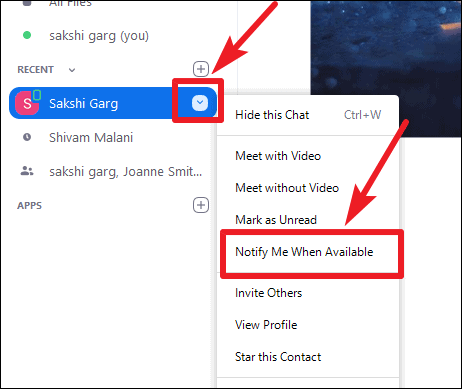 Waiting for someone to come online to have an important discussion with them? With Zoom Chat, you don’t have to wait. With this nifty Zoom feature, you can simply turn on the notification for when the person comes online and is available for a chat instead of having to stare at the screen and wait for the little dot next to their profile to turn green.