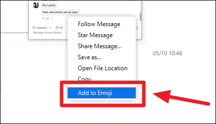 To quickly add images from a conversation, simply right-click on the image and select ‘Add to Emoji’ from the available options.