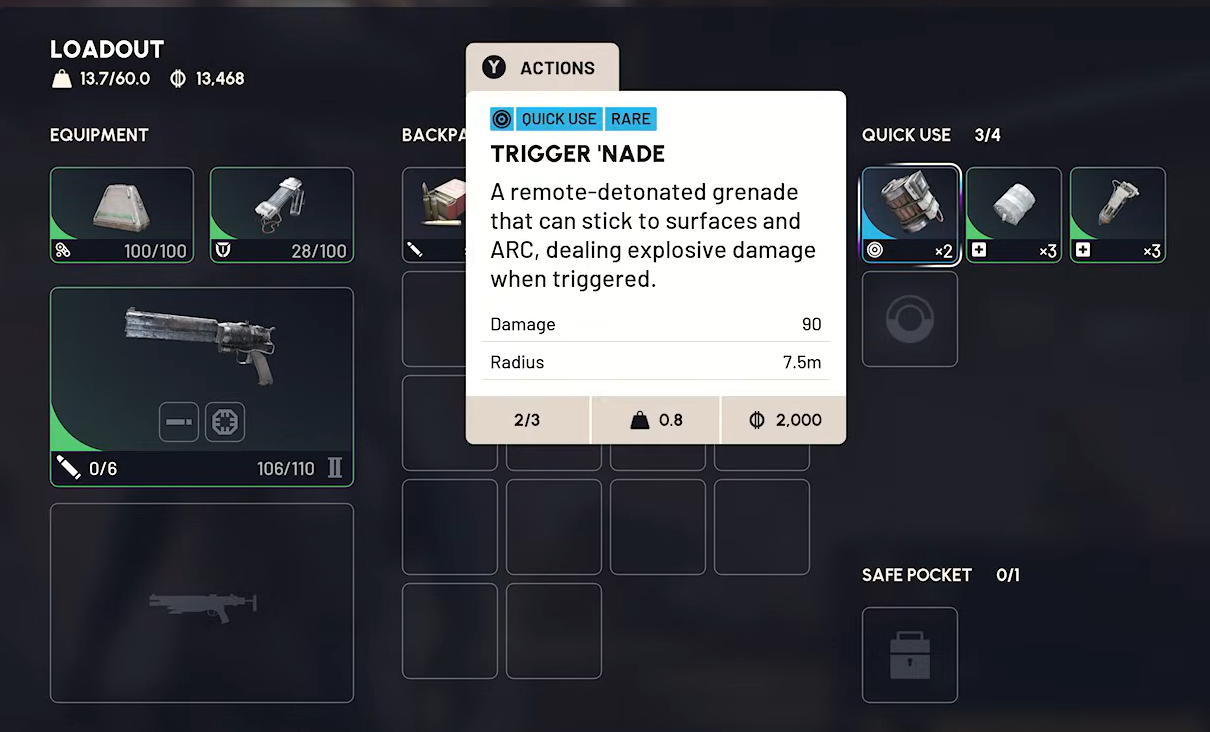 Step 1: Put Trigger 'Nades in your Quick Use slot (or Safe Pocket if you want to protect them) before deployment. This ensures you can access and reuse them during the raid without digging through your inventory mid-fight.