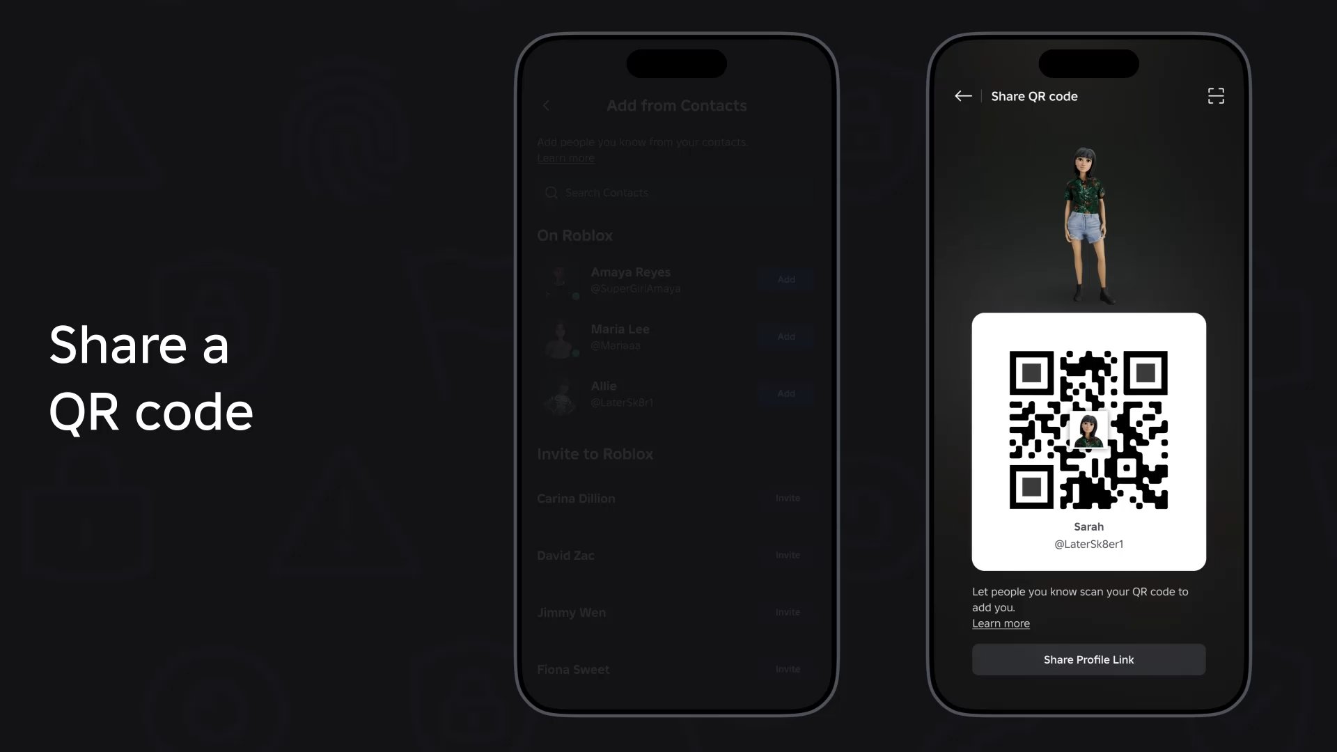 Step 2: Use a real‑life channel to create the connection. Roblox limits this to Contact Importer (matching a phone contact) or a QR scan. The idea is that Trusted status reflects a preexisting real‑life relationship such as family or classmates, not someone met randomly in a game.
