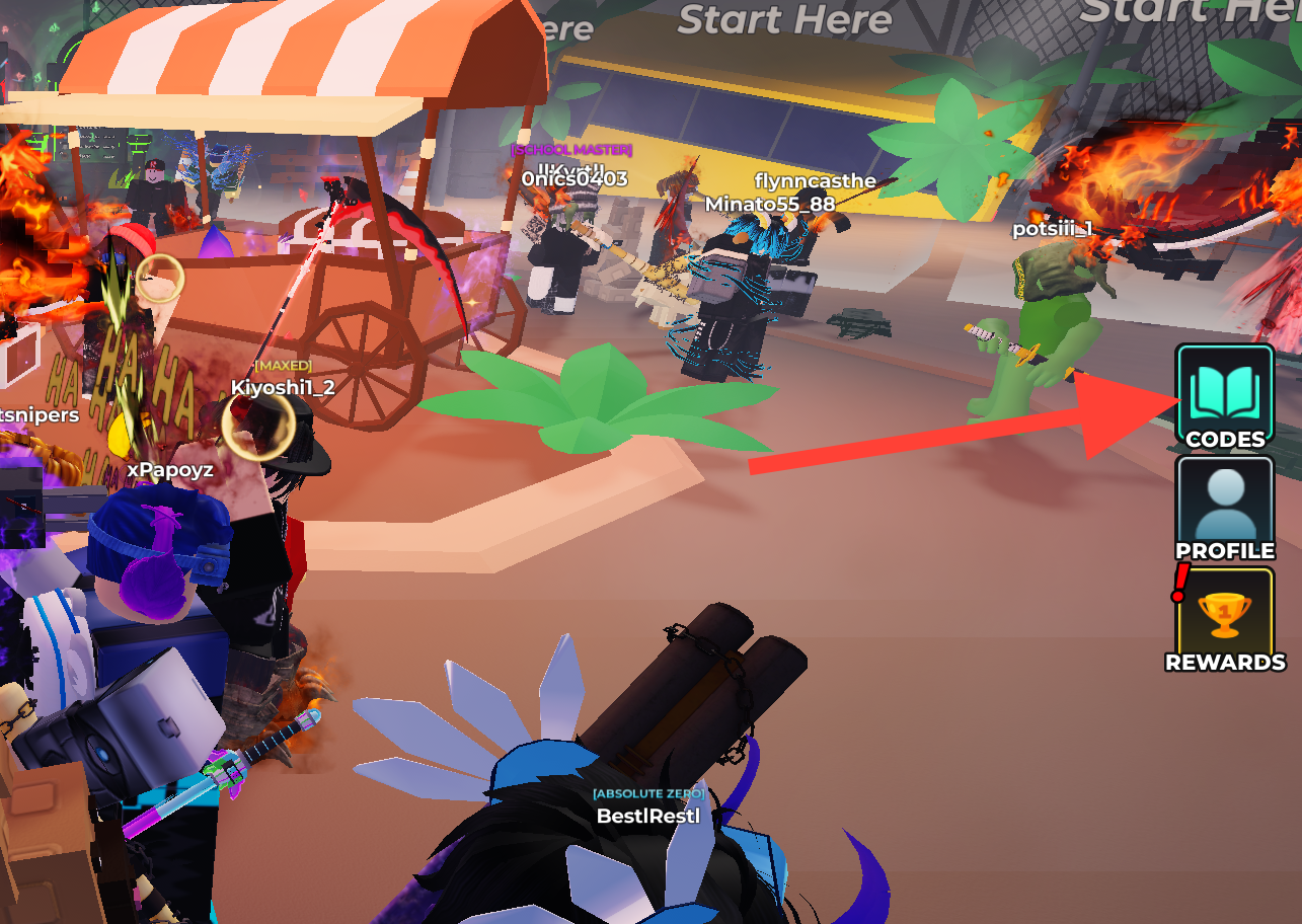 Step 2: Click the “Codes” button on the right side of the screen to open the redemption window.