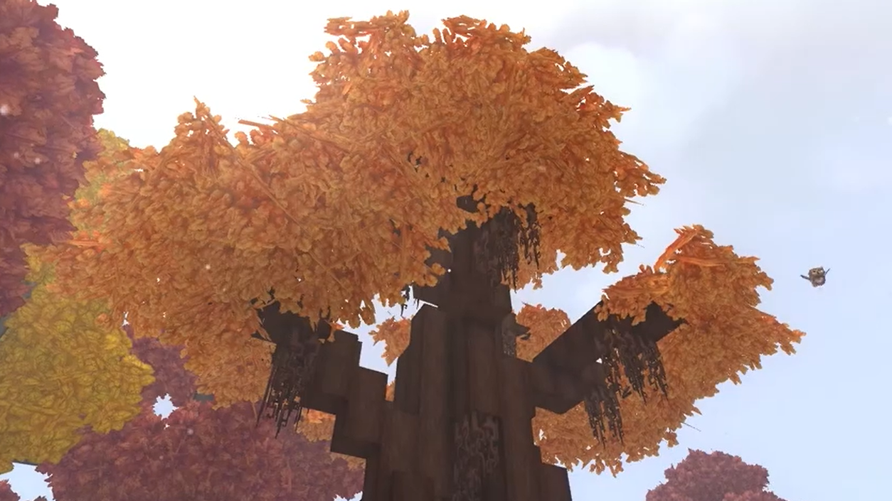 - Oak trees use dark, “chocolate” colored wood with yellowish‑orange leaves.
