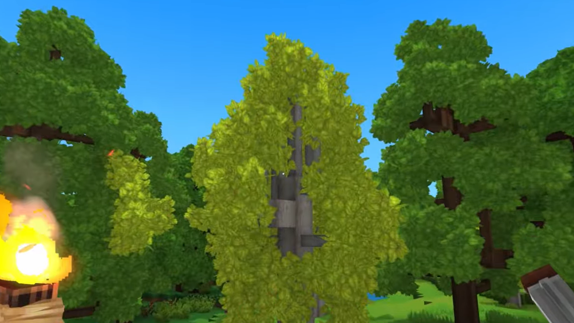 Step 1: Find beech or aspen trees in the overworld and cut them down with an axe. Focus on the trunk blocks to collect Beech Logs or Aspen Logs.