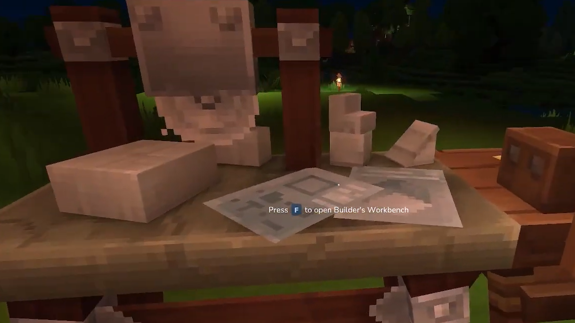 The Builder’s Workbench is the tool that turns raw logs into planks and then into more complex building pieces like stairs, slabs, beams, and roof blocks. It also handles processed variants for other materials.