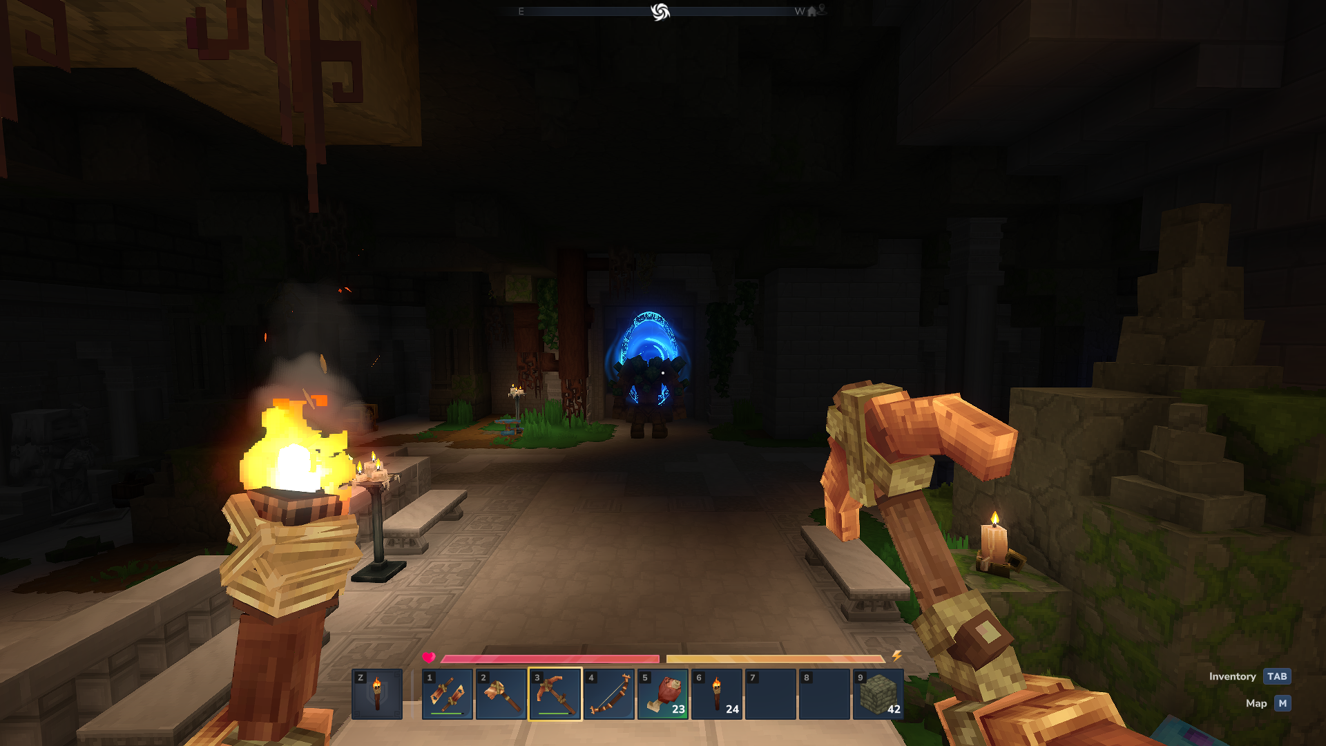 Hytale is framed very differently. It combines a sandbox world with the structure of a role‑playing game. The world is built around dungeons, towers, and handcrafted encounters. Lore, factions, and quests are not side dishes; they define how you move through the world. The gameplay loop leans toward exploration, combat, and progression rather than pure survival friction.