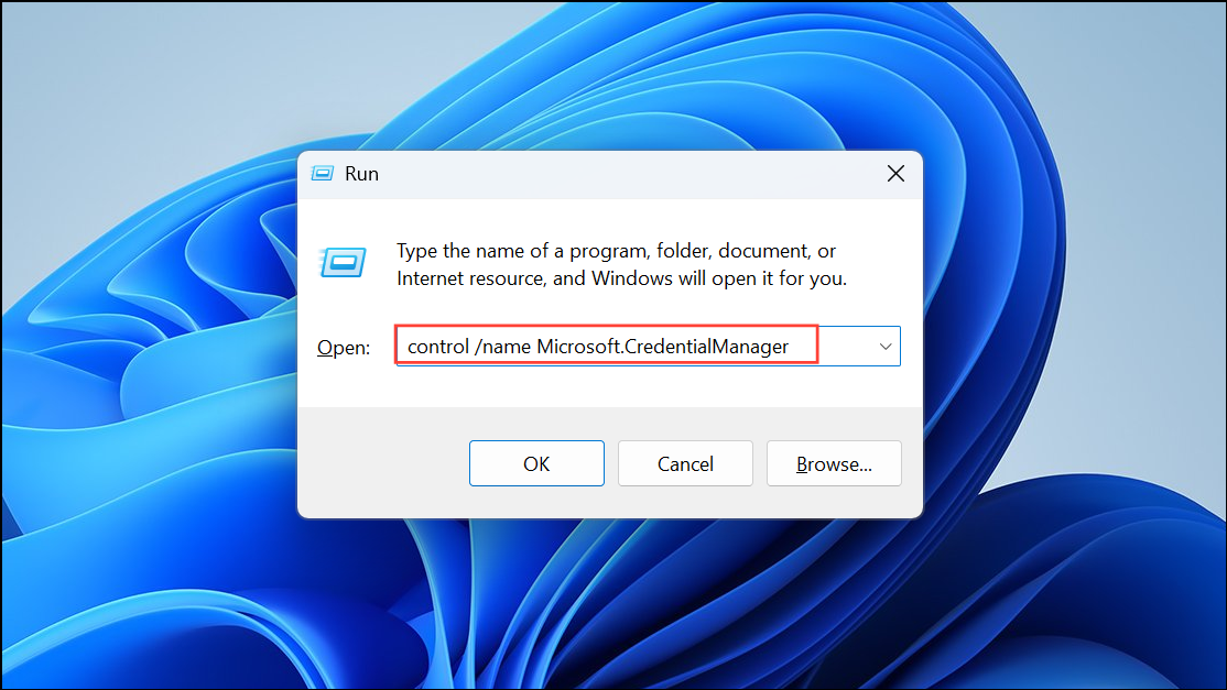 Step 1: Open the Credential Manager by pressing Windows + R, typing control /name Microsoft.CredentialManager, and pressing Enter. This tool stores web and Windows credentials, including those used by RDP.
