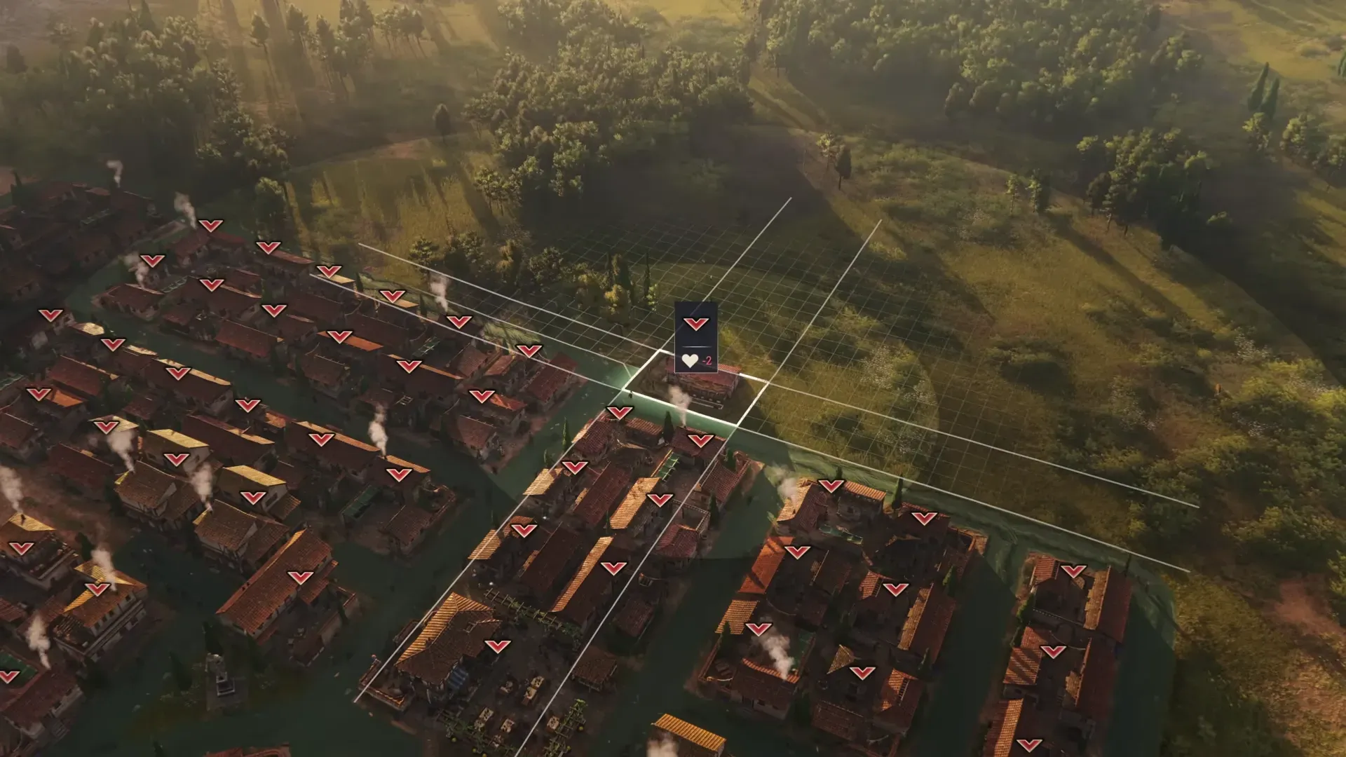 - Plan “clean cores” and “dirty belts.” Keep residences, markets, Custodes/Medici, theaters, and small cultural boosts in the core. Create a belt or peninsula for odor, smoke, or noise producers (tanners, garum, pig farms, charcoal burners), linked by roads to depots—not to your housing grid.