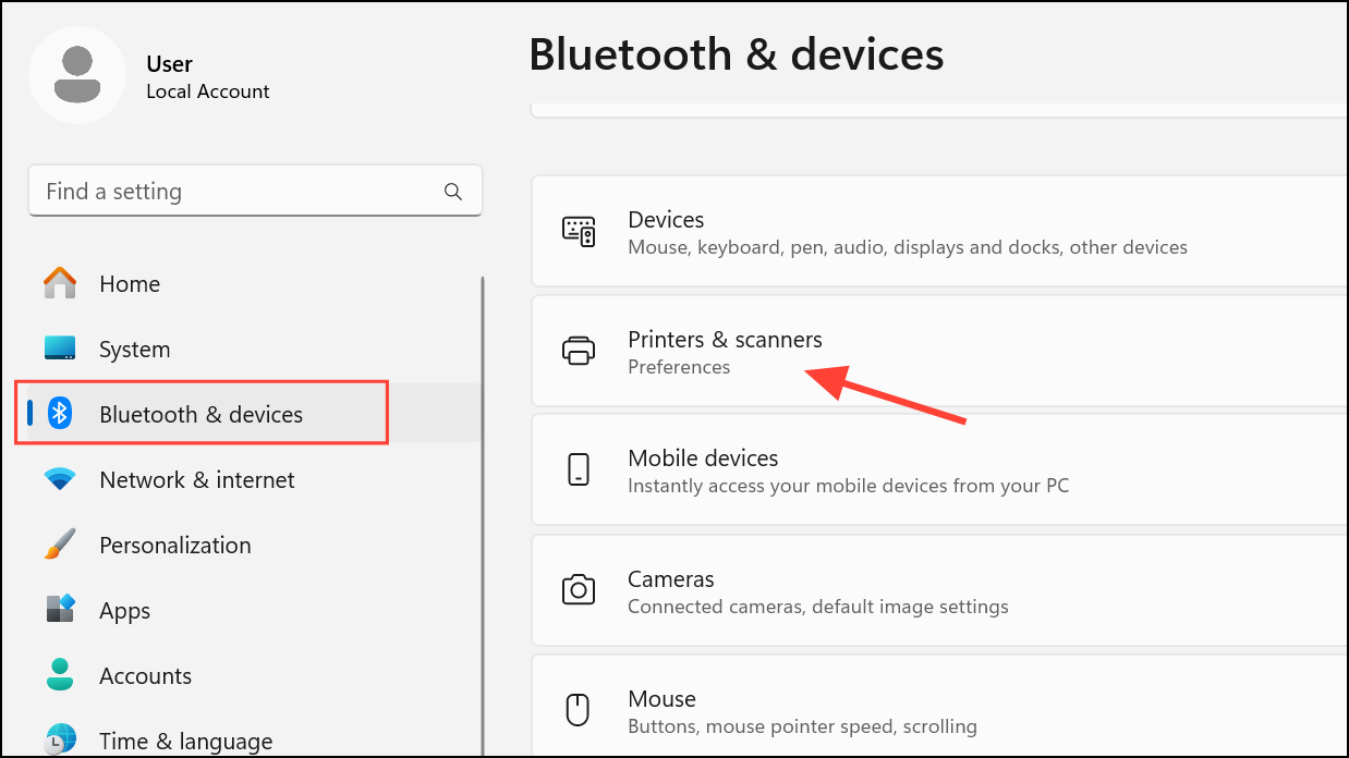 Step 2: Open the Settings app by pressing Win + I. Navigate to Bluetooth & devices > Printers & scanners. This section lists all printers currently installed on your system.