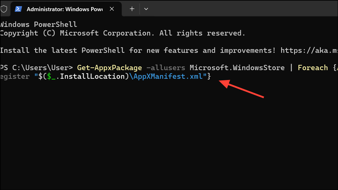 Get-AppxPackage -allusers Microsoft.WindowsStore | Foreach {Add-AppxPackage -DisableDevelopmentMode -Register "$($_.InstallLocation)\AppXManifest.xml"}This command reinstalls the Store app for all users, which can resolve deeper corruption or missing files.