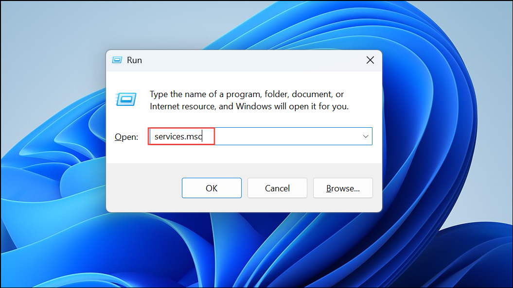 Step 1: Open the Services management console by pressing Windows + R, typing services.msc, and pressing Enter.