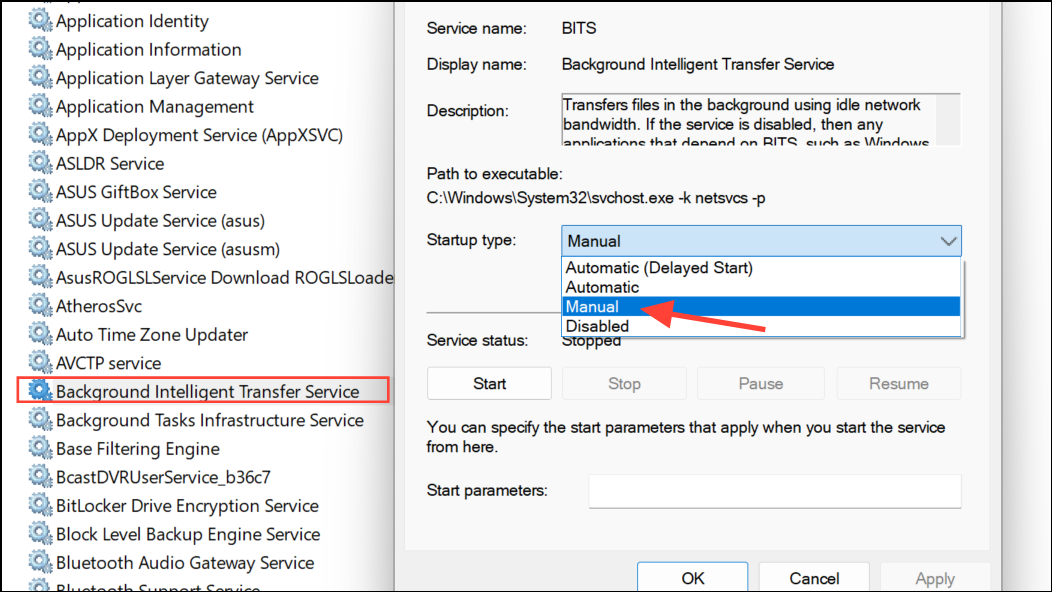- Background Intelligent Transfer Service (BITS)