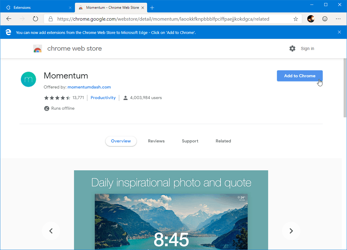 - Select an extension and click the Add to Chrome button to install it on Edge.