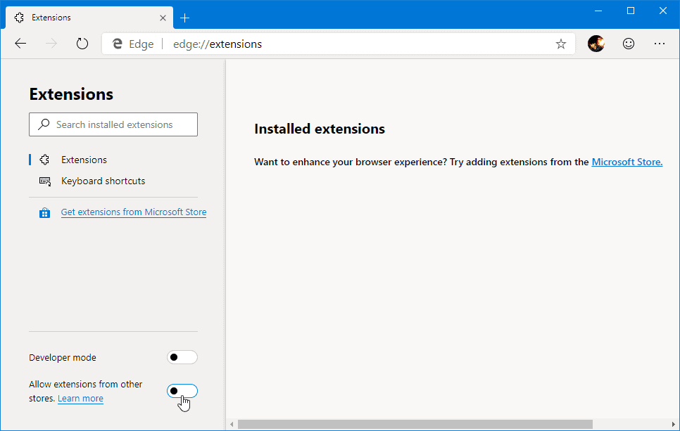 The new chromium based Edge not only adopts the Chrome engine but also fully supports all Chrome extensions from the Chrome Web Store. The ability to download and install Chrome extensions on edge is disabled by default, but you can enable it by going to Edge’s extensions page edge://extensions/.