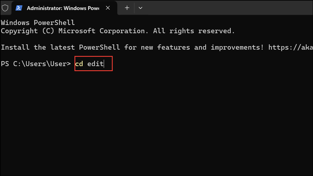 Step 4: Open Windows Terminal, Command Prompt, or PowerShell. Type edit and press Enter to launch the editor. Alternatively, double-click the .exe file. You can also open a specific file by running edit <filename>. If Edit launches successfully, you’re ready to start editing files directly in the terminal.