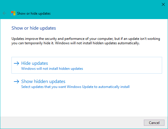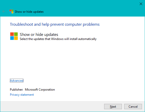 - Download and run wushowhide.diagcab troubleshooter package on your Windows 10 PC.