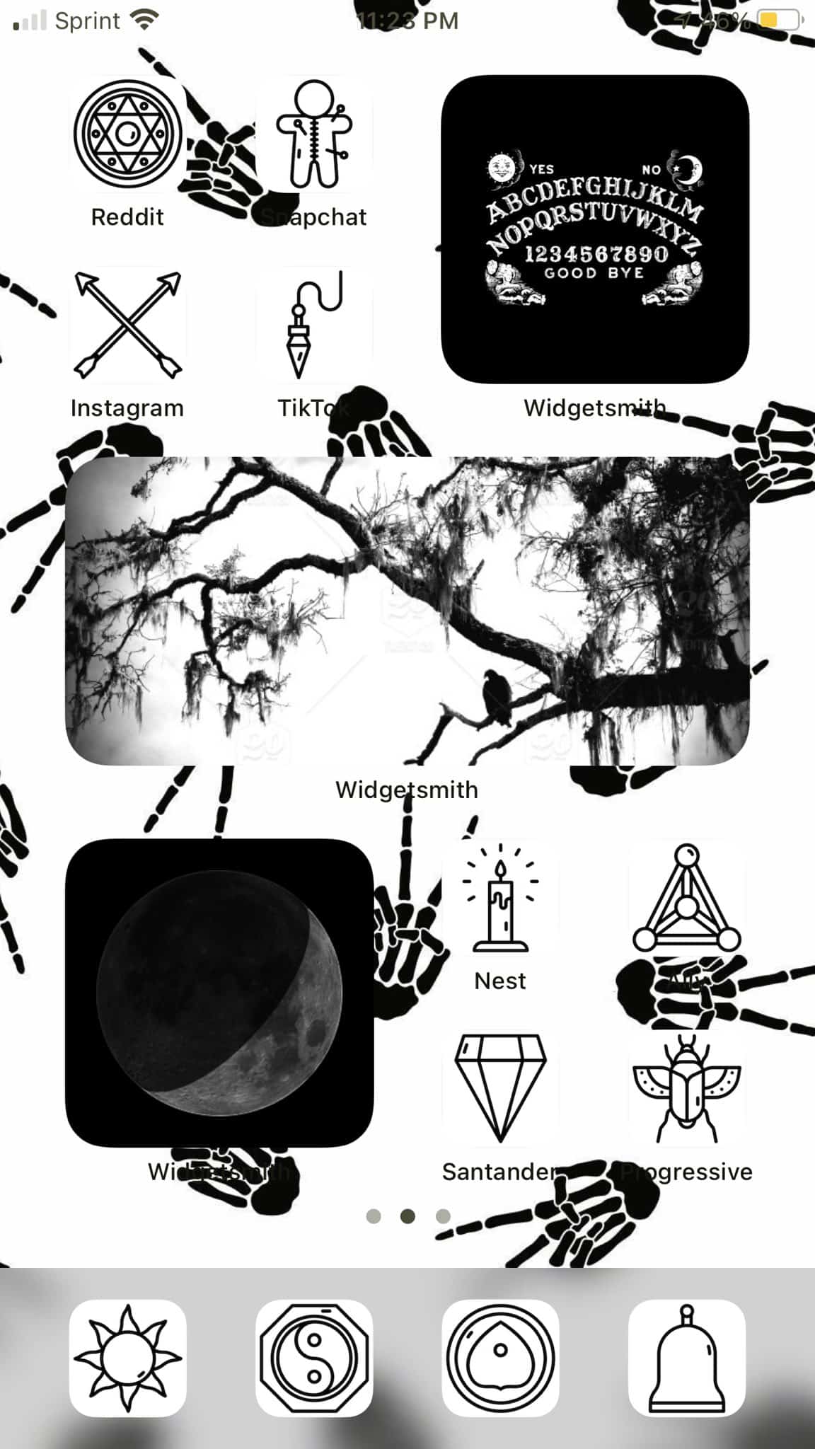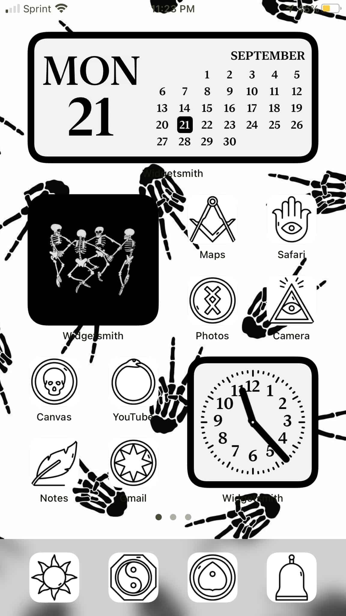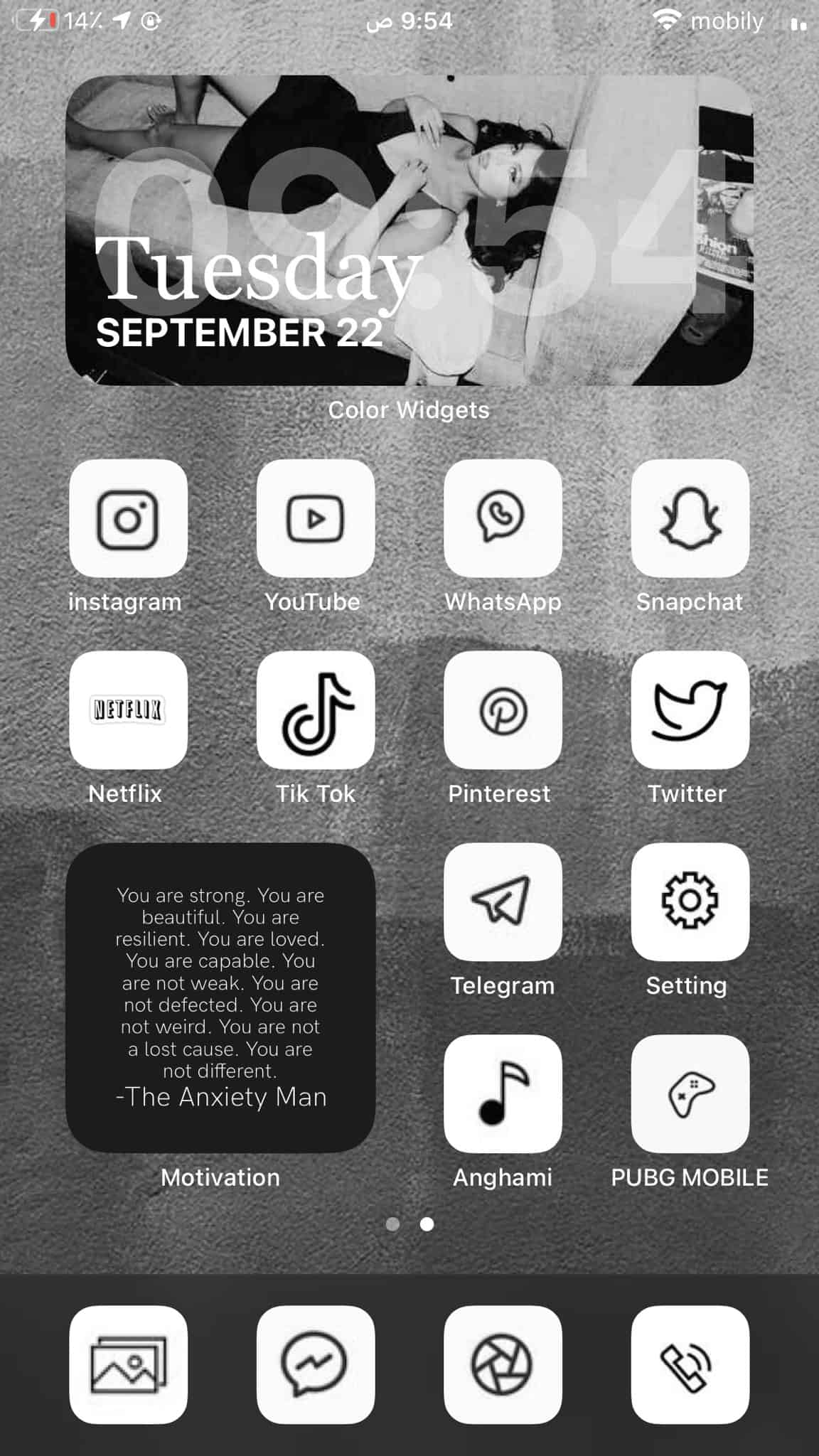 Black aesthetic home screen created with shadow effect iOS 14 icons.