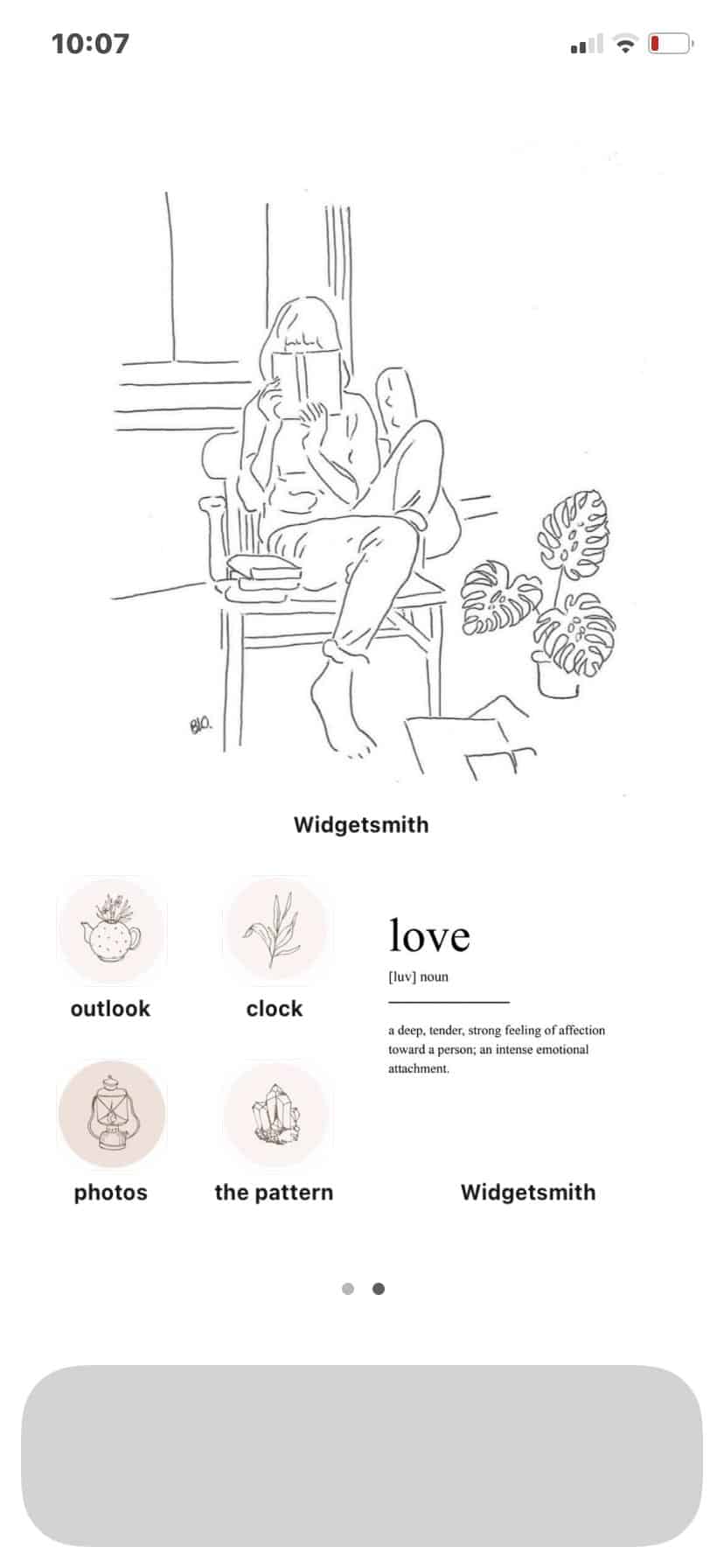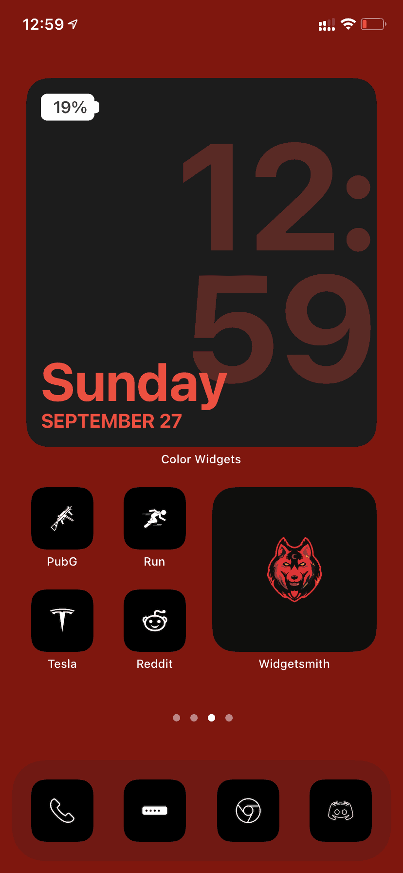 Minimalist iOS 14 aesthetic screen with a touch of red and black.