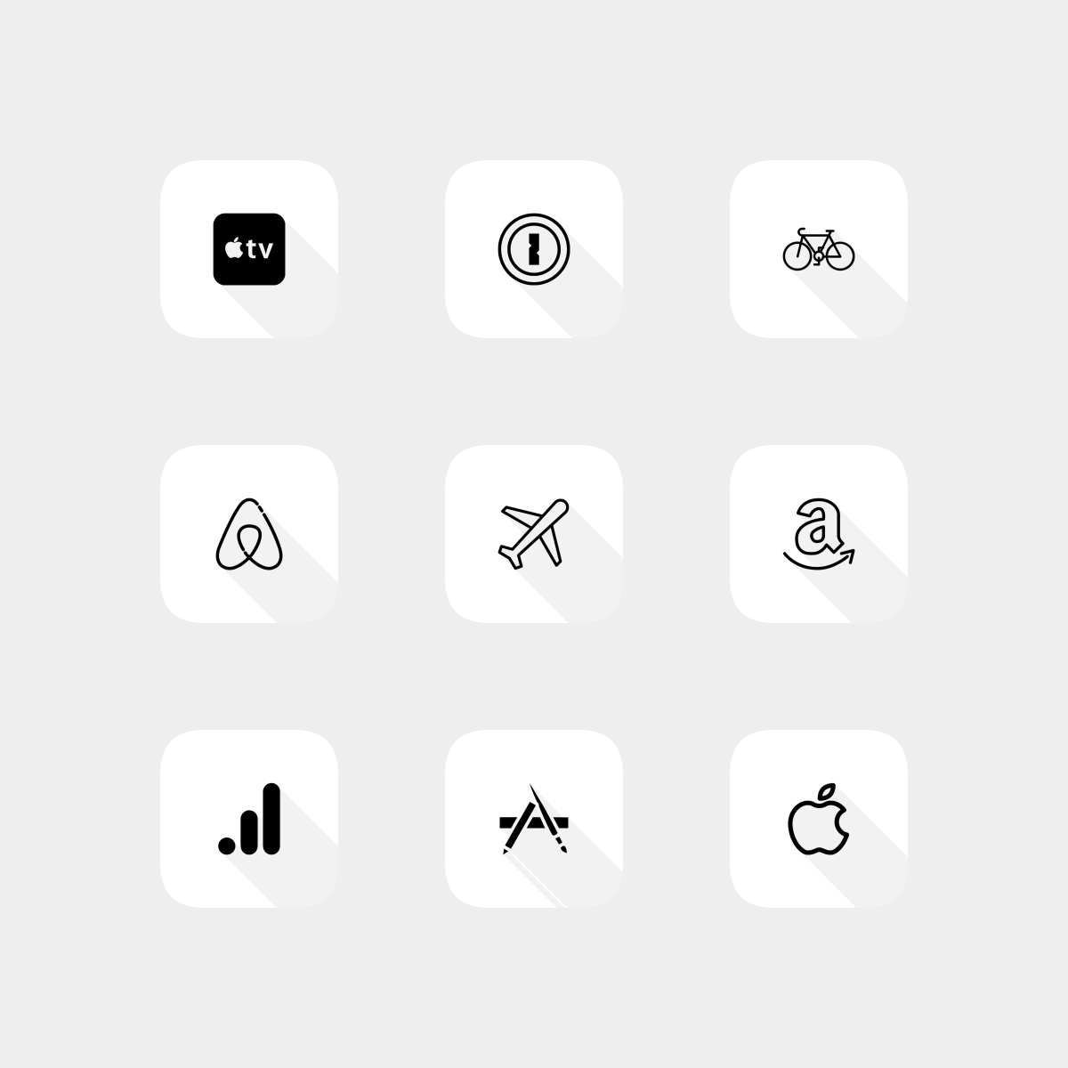 Create a minimal white shadow aesthetic screen with these icons.