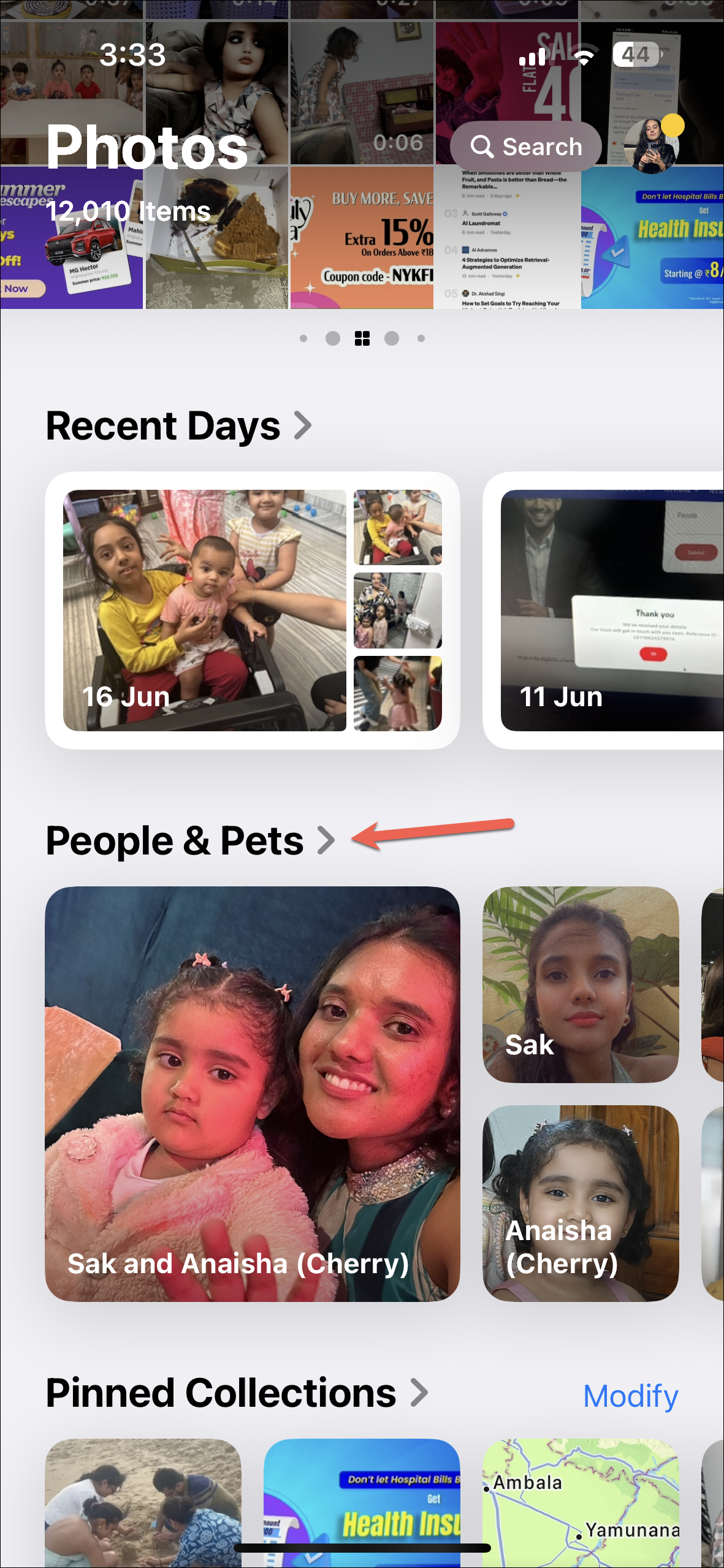 - Scroll down and tap the 'People & Pets' option.