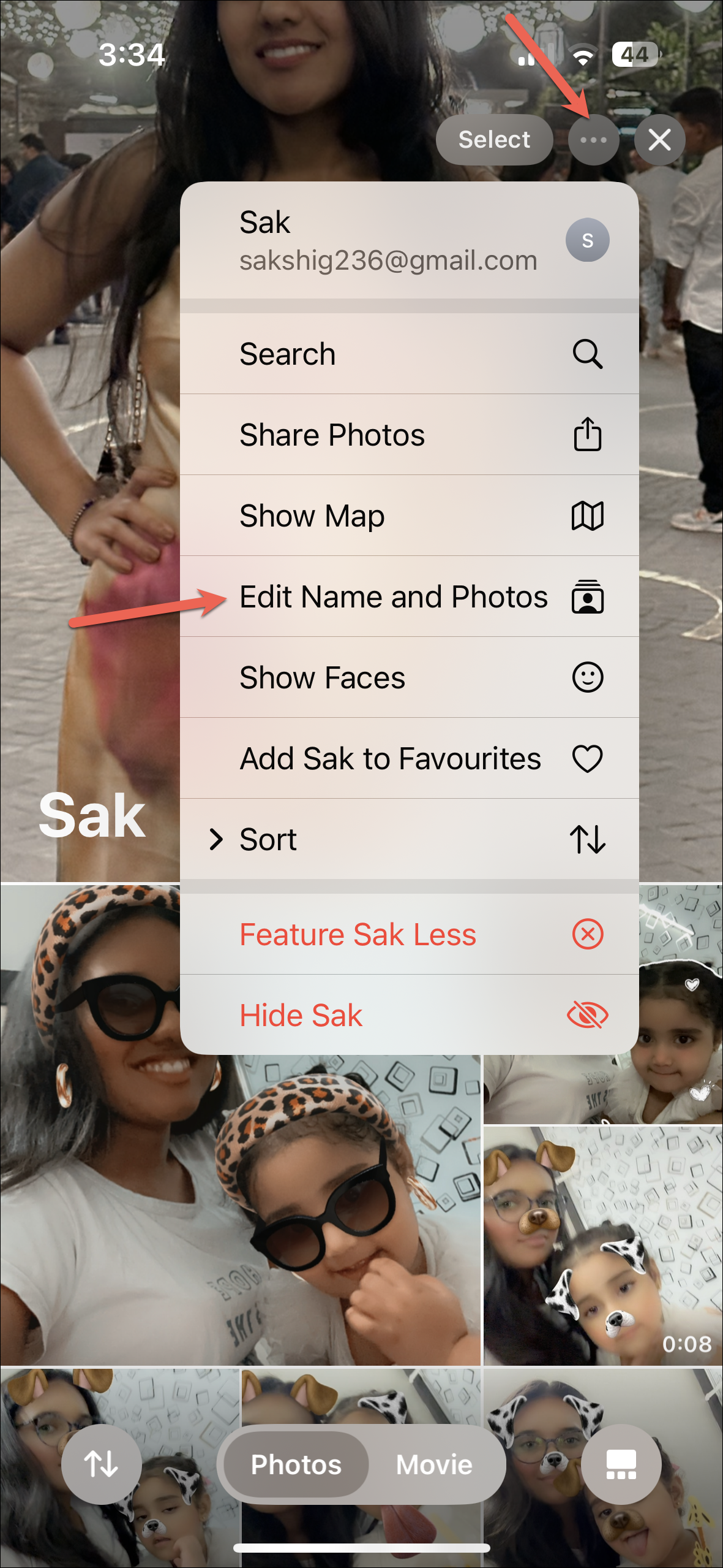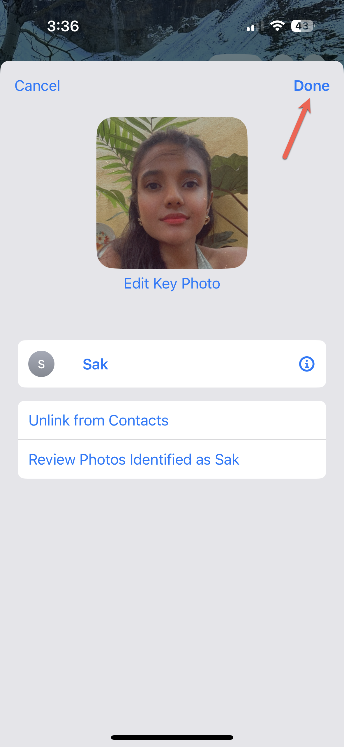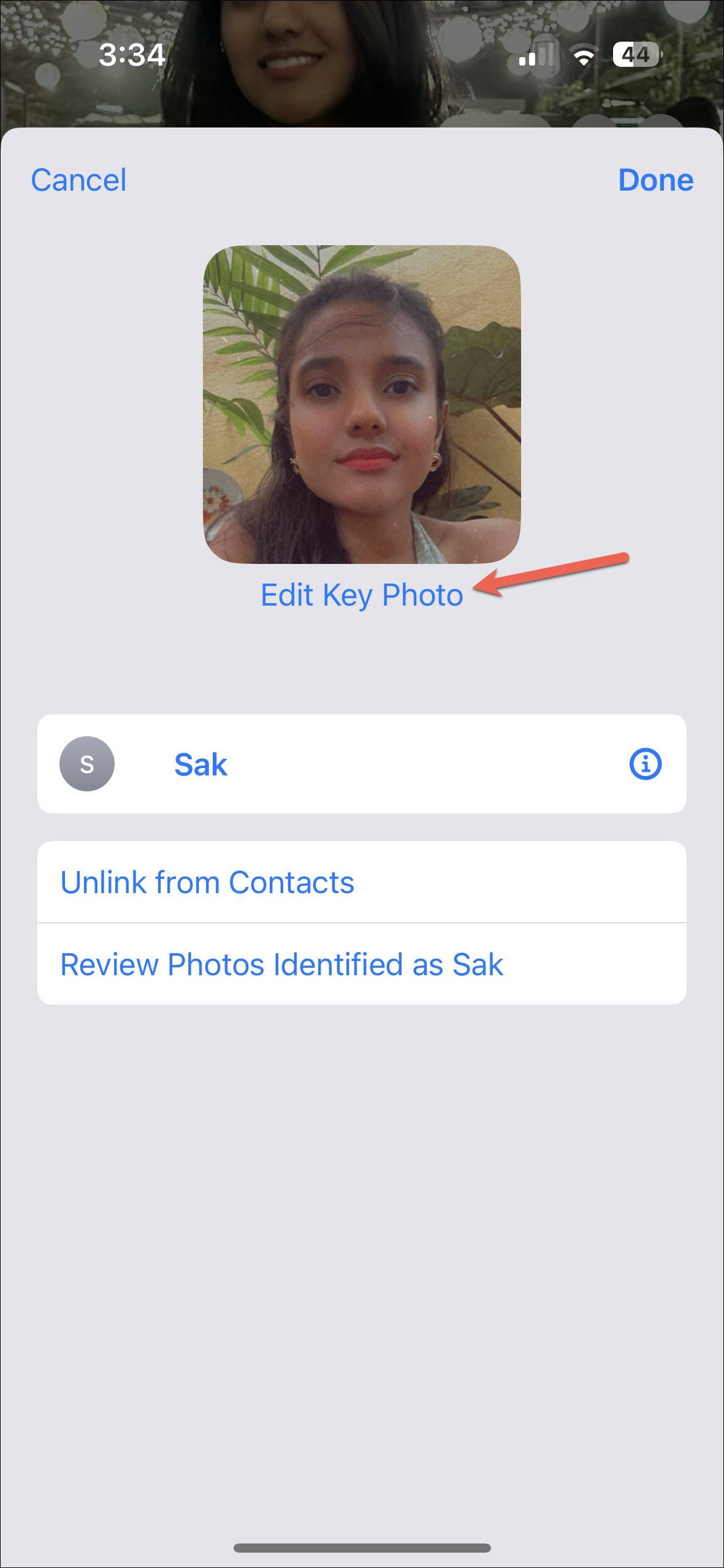 - Then, tap the photo of the person (or the pet) you want to change the Key Photo for.