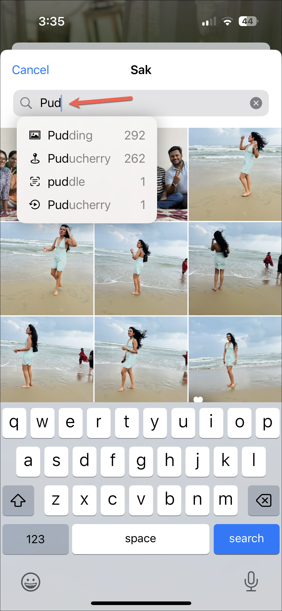 - Their photos will appear. You can even use the 'Search' option to narrow the search using different options like location, other people, year, text, objects in photos, etc.