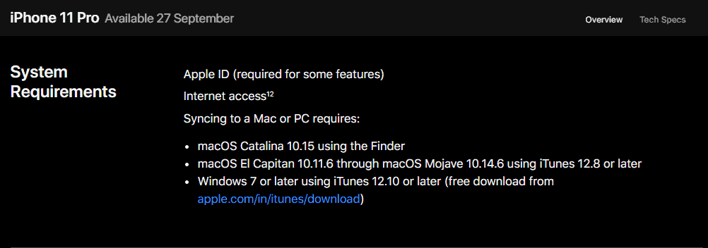 The iPhone 11 system requirements confirms that Windows users will need to install iTunes 12.10 or later to be able to sync. And since it’ll be shipping with iOS 13 out of the box, it’s obvious that iOS 13 will require iTunes 12.10 as well.