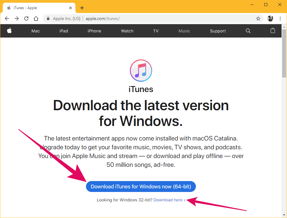 If you want to skip the procedure, here are the direct download links for iTunes for Windows which are revealed in the instructions reveals. These links will always download the latest version of iTunes only.