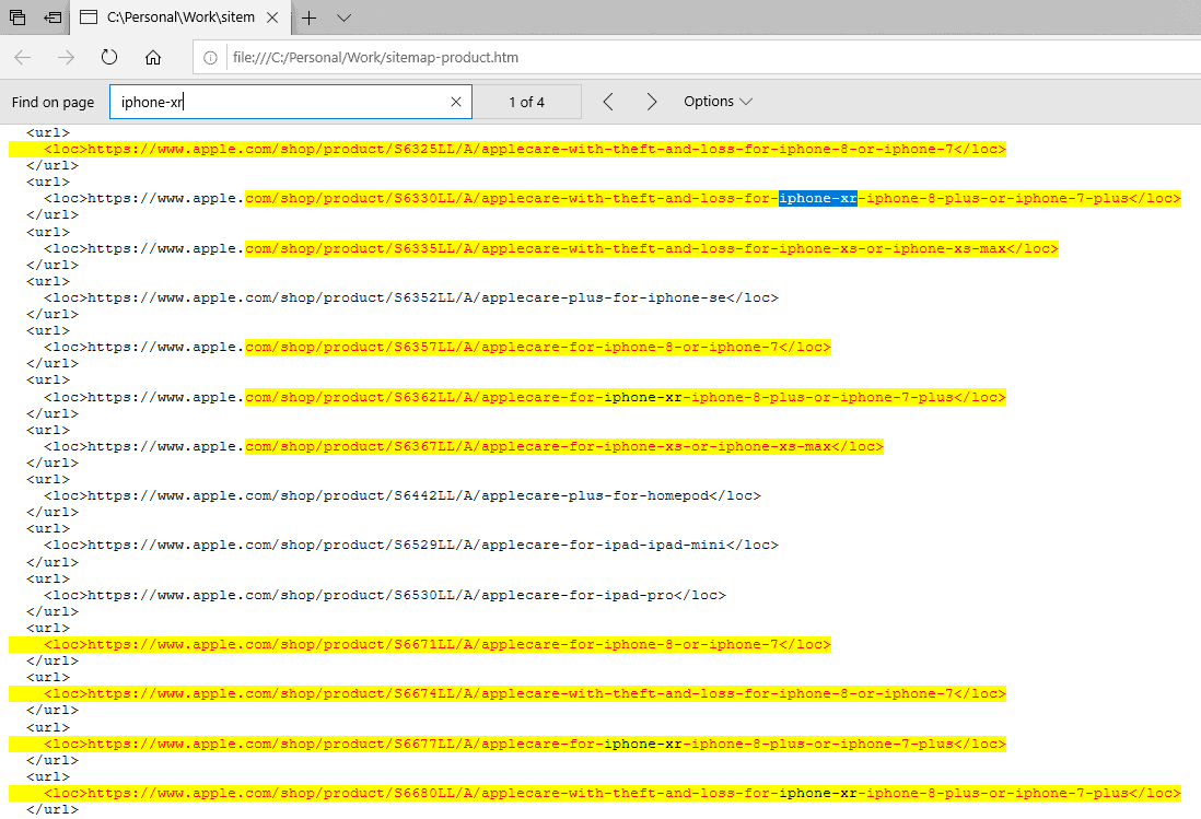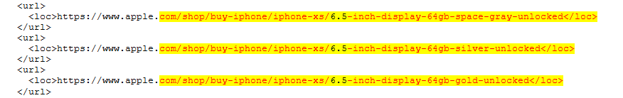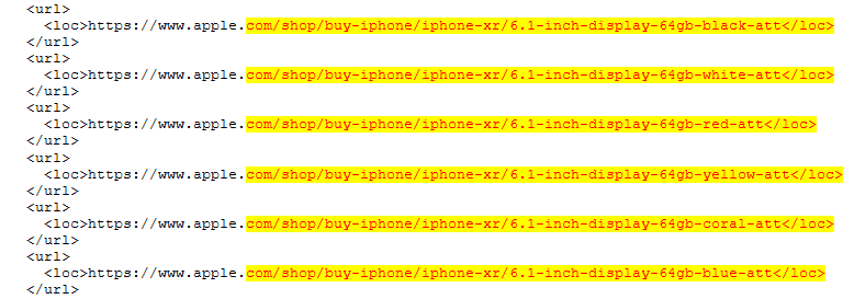 Update 3: The sitemap also has mentions of the display size, storage and color options for the iPhone XR, iPhone XS and iPhone XS Max.
