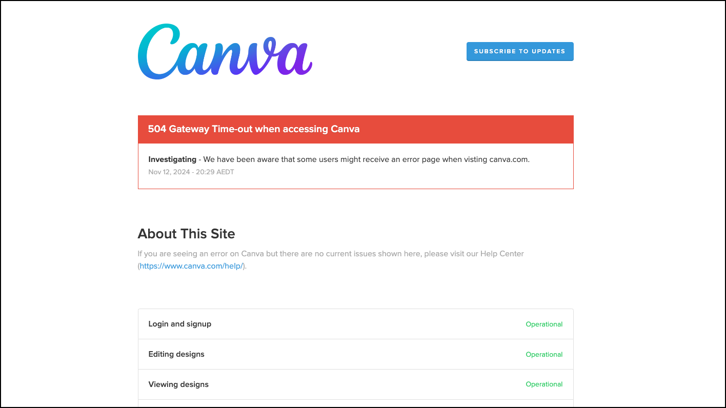 I went to Canva's website it linked to check the status and the website clearly mentioned there was an outage.