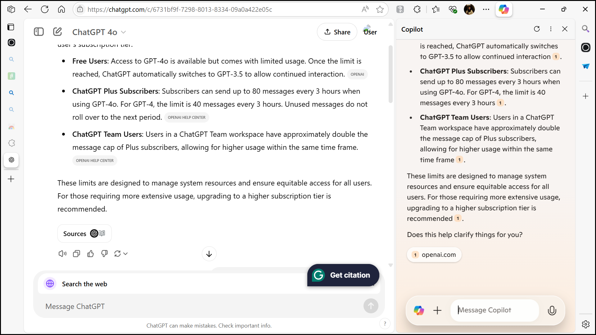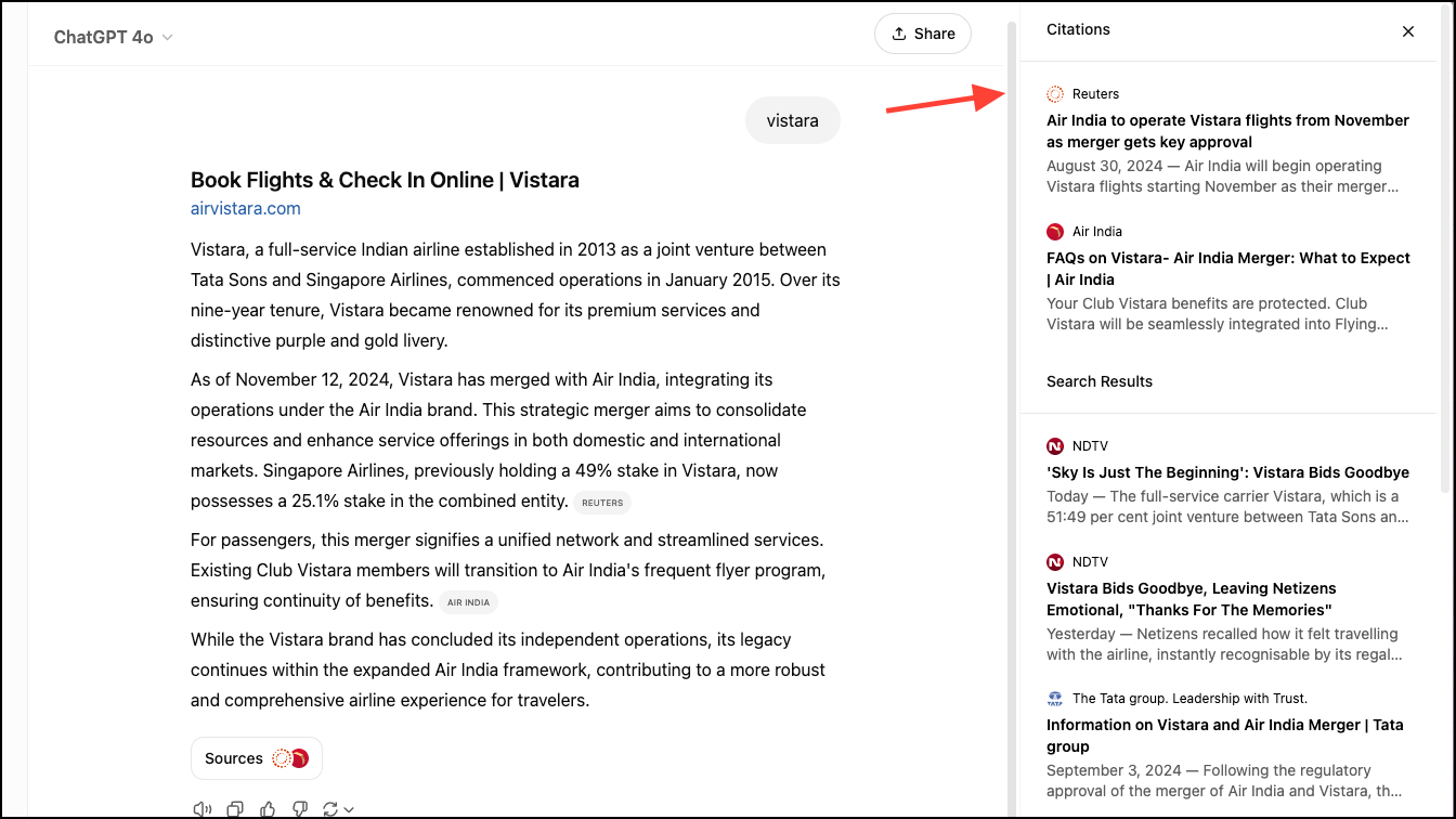 It also makes it easy to view the sources and explore them further. On the web, sources and further search results appear in a sidebar and if you previously opened it, ChatGPT opens it for all subsequent queries until you manually close it.
