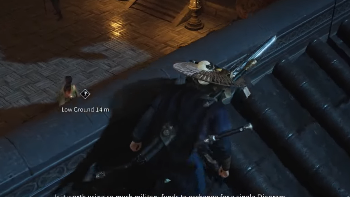Step 2: Jump into the water and dive immediately to avoid detection. Swim to the underwater outlet directly beneath the palace square where the Shu envoy stands. A cutscene will trigger when you reach the correct position.