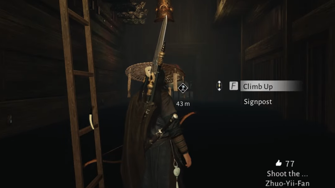 Step 1: Pull the lever on the central platform to raise the water level. Enter the lower right cabin with a ladder. Instead of climbing, shoot the bell in the middle of the hallway and use Meridian Touch to destroy the lock on the gate. Pull the lever inside.
