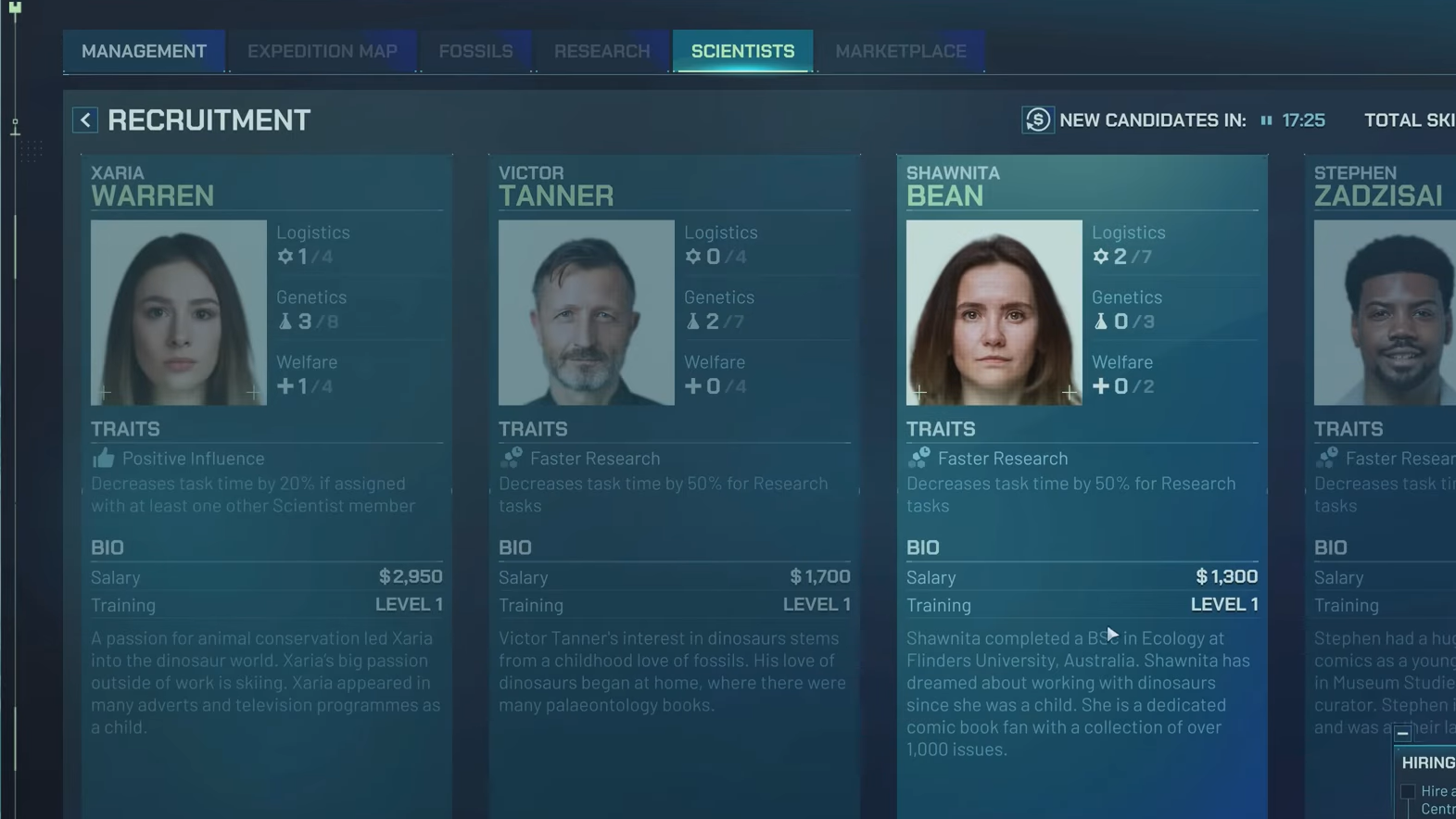 The Science Centre is where you expand your toolkit—new buildings, building upgrades, medicine, dig sites, and other improvements. Assign scientists with the required skills, budget the money and time, and progress node by node.
