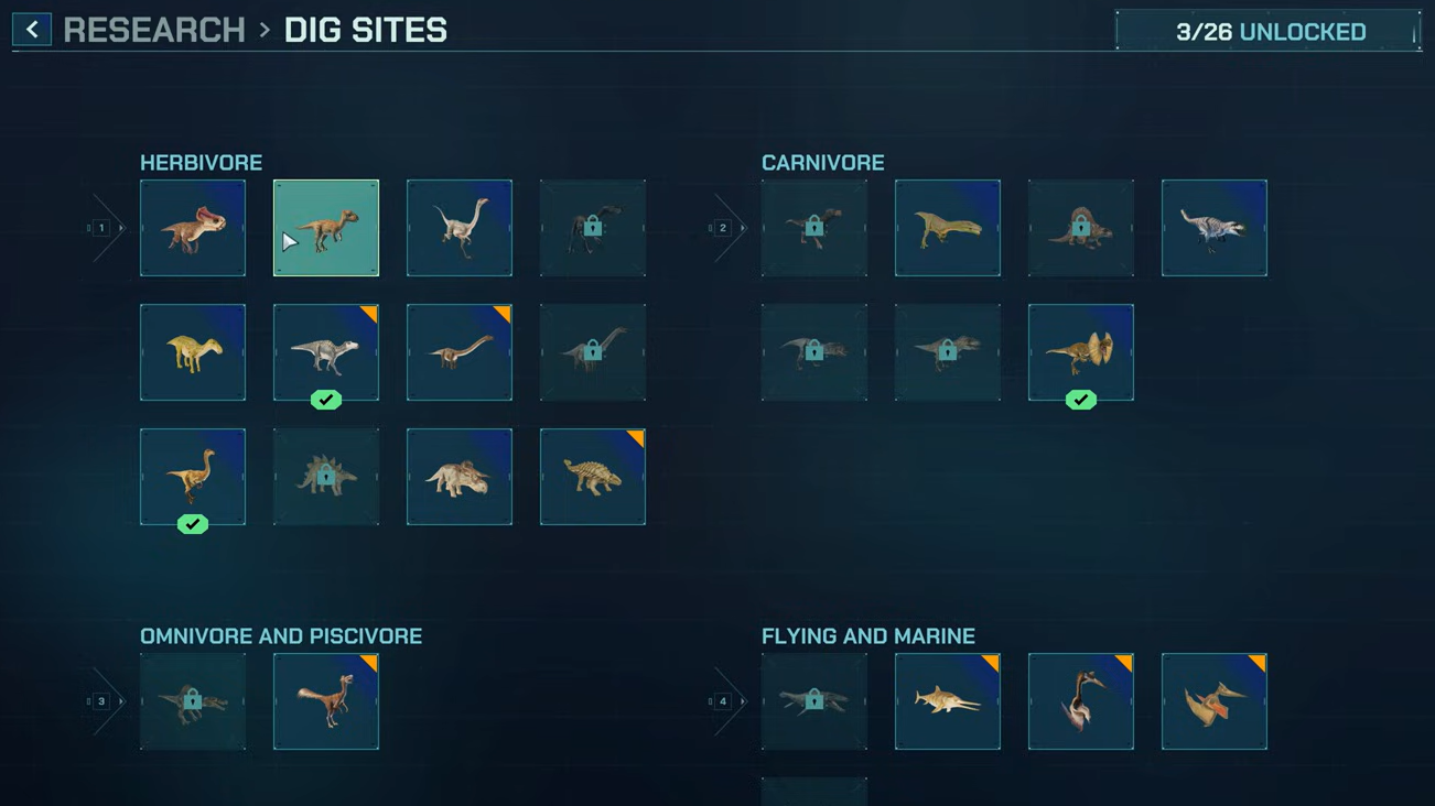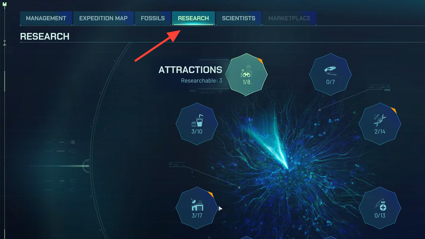 Dig Sites unlock new fossils and species, but each expedition and extraction draws from the same pool of money and Scientists you need elsewhere. Slot these in once Operations, Enclosures, and core Medicine are covered. The payoff is variety — more species means more enclosure designs, better exhibits, and fresh attraction value.