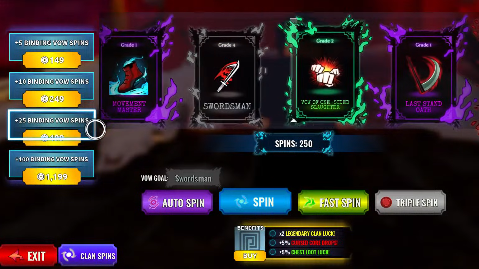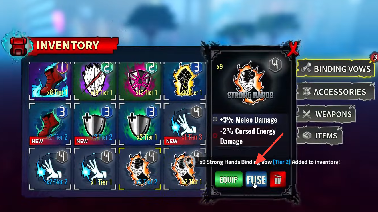 Every Binding Vow obtained from the spin arrives at Tier 1. Fusing is the only way to upgrade them, and the process is straightforward but resource-intensive.