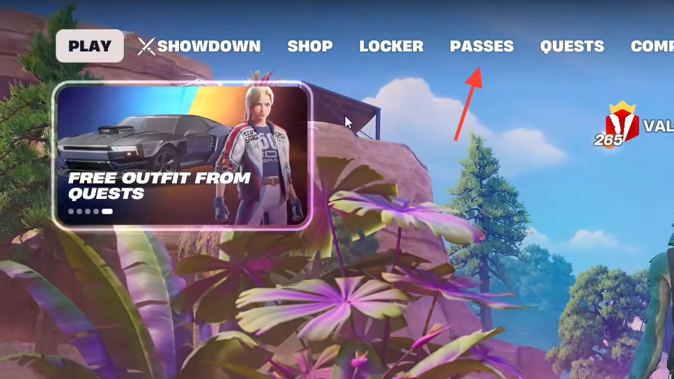 Step 1: Launch Fortnite and go to the Passes tab at the top of the main lobby.