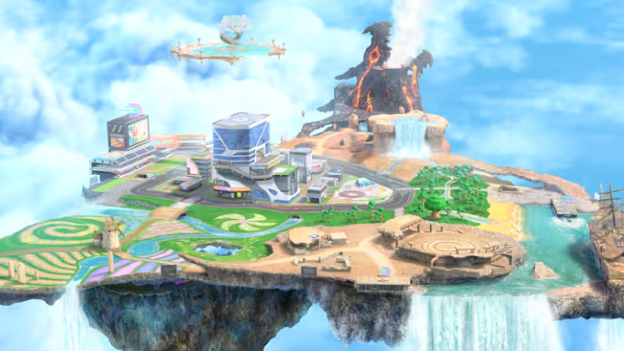 City Trial in Kirby Air Riders is built around one clear loop: scramble for upgrades on the floating island of Skyah for five minutes, then take your tuned machine into a short Stadium contest. Everything else — the field events, legendary machines, and PvP — exists to push that loop into chaos.
