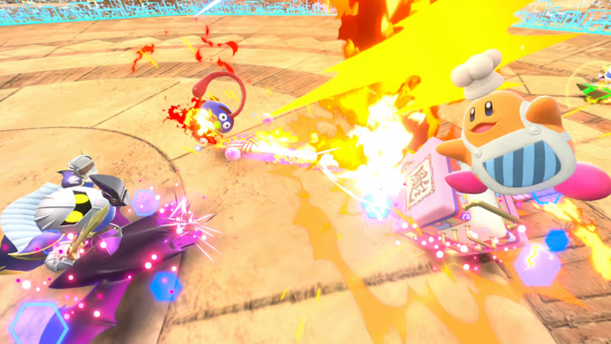 Blueprints scattered through stages and boss rewards unlock Evolved Copy Abilities at Waddle Dee’s Weapons Shop in town. Upgrading costs Star Coins and Rare Stones, the latter earned mainly in Treasure Road challenges. Each evolution modifies attack patterns and raw damage: Dragon Fire leaves combustion trails, Chain Bomb links explosives into webs, and Meta Knight Sword reshapes Kirby’s neutral sword into a more aggressive, combo-heavy kit.
