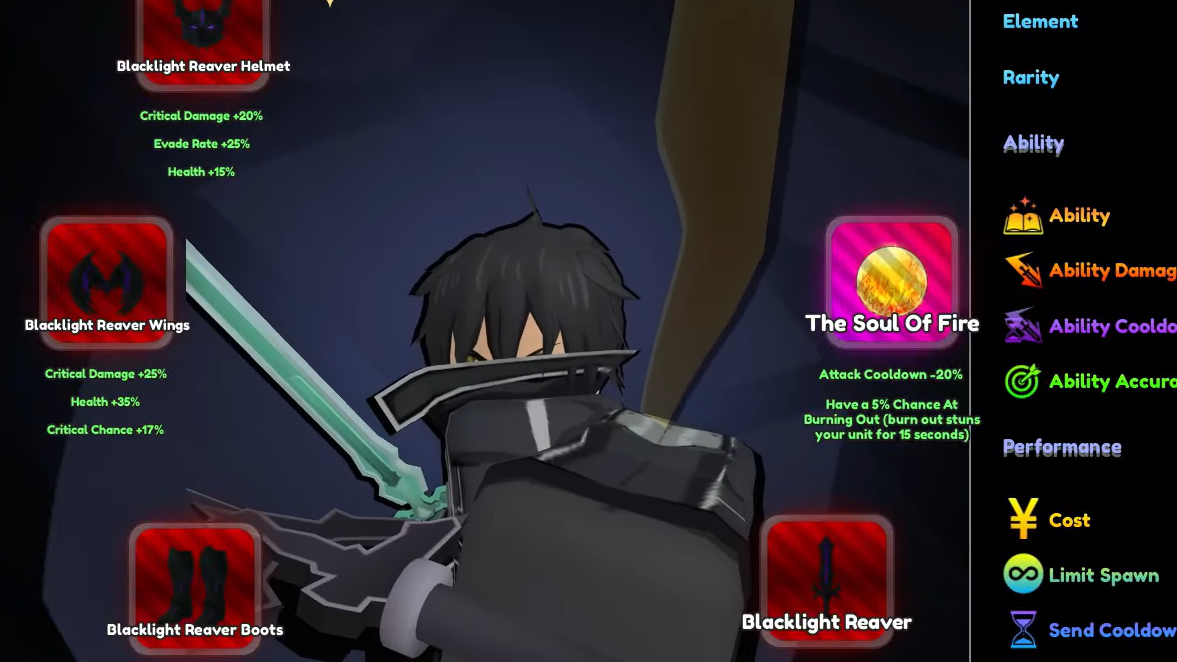 Kirito — listed in-game as Virtual Swordsman — is one of the rarest units in Anime Rangers X. He cannot be pulled from a standard banner. Instead, you have to grind the dungeon game mode and hope the RNG gods cooperate, because his drop rate sits well below one percent. Once you do land him, evolving him into Virtual Swordsman Stardust turns him into a crit-scaling powerhouse with a unique duo mechanic tied to Asuna.