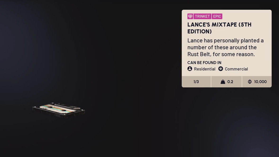 The bottom line: Lance’s Mixtape (5th Edition) is a lightweight, high-yield trinket. If you find one, extract and sell — and if you find more, stack up to three for a tidy 30,000 payout without weighing yourself down.