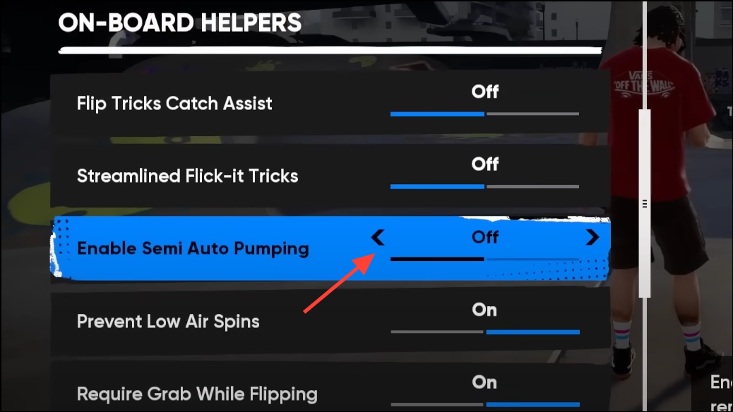 Step 2: Enable the “Press forward to pump” option. This allows a forward press on the left stick to register as a pump input during transitions instead of only steering.