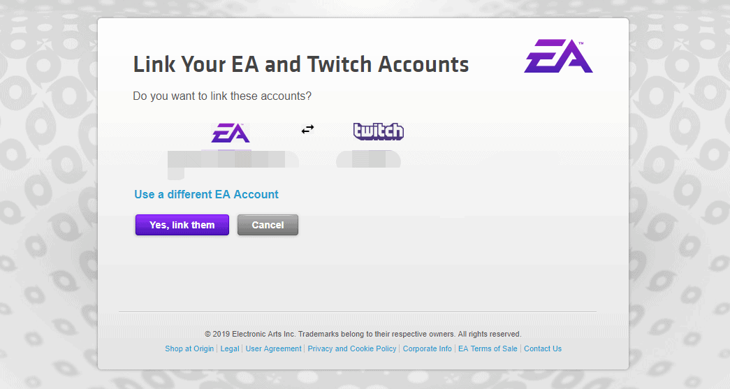 - Finally, you’ll get the option to link Twitch to EA. Click the Yes, link them button to continue.