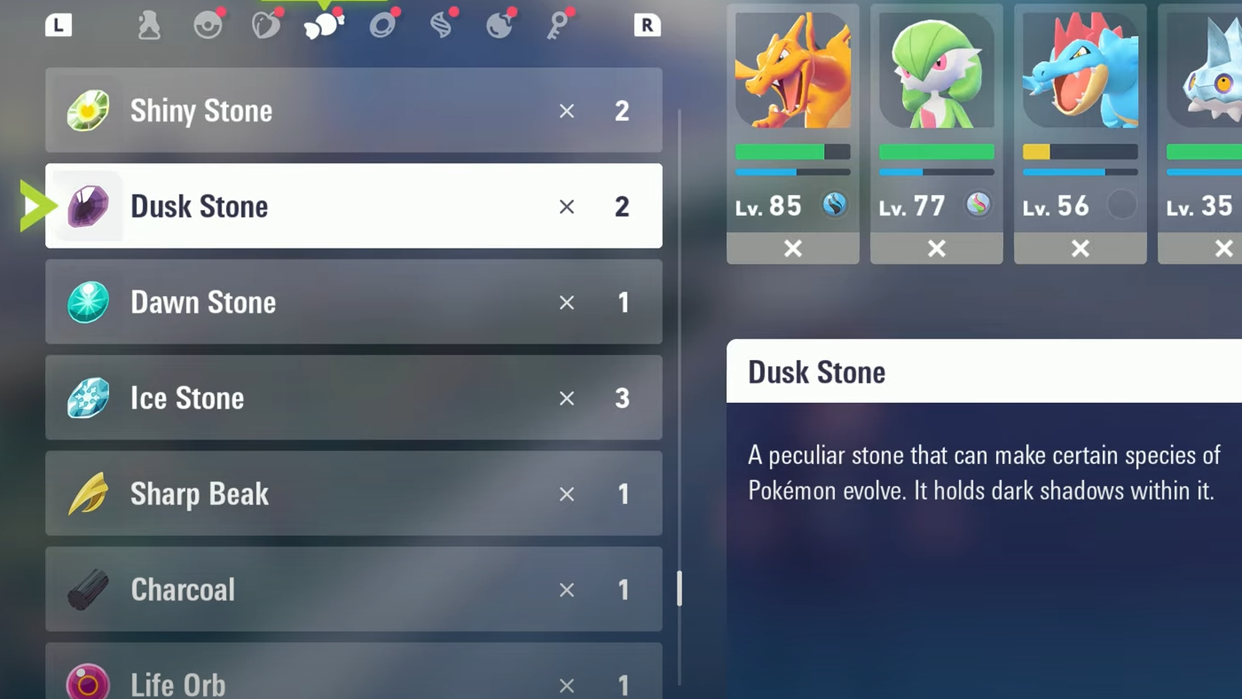 | Evolution items | Dusk Stone (Lampent → Chandelure); Chandelurite for Mega |