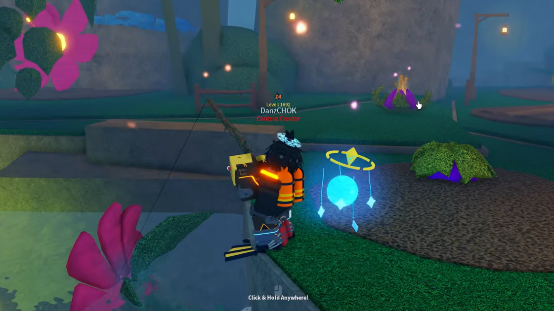 Step 3: After the flowers and cages are set, fish the area normally for the remaining pool. This lets passive catches progress while you wait for the Flower Guardian.