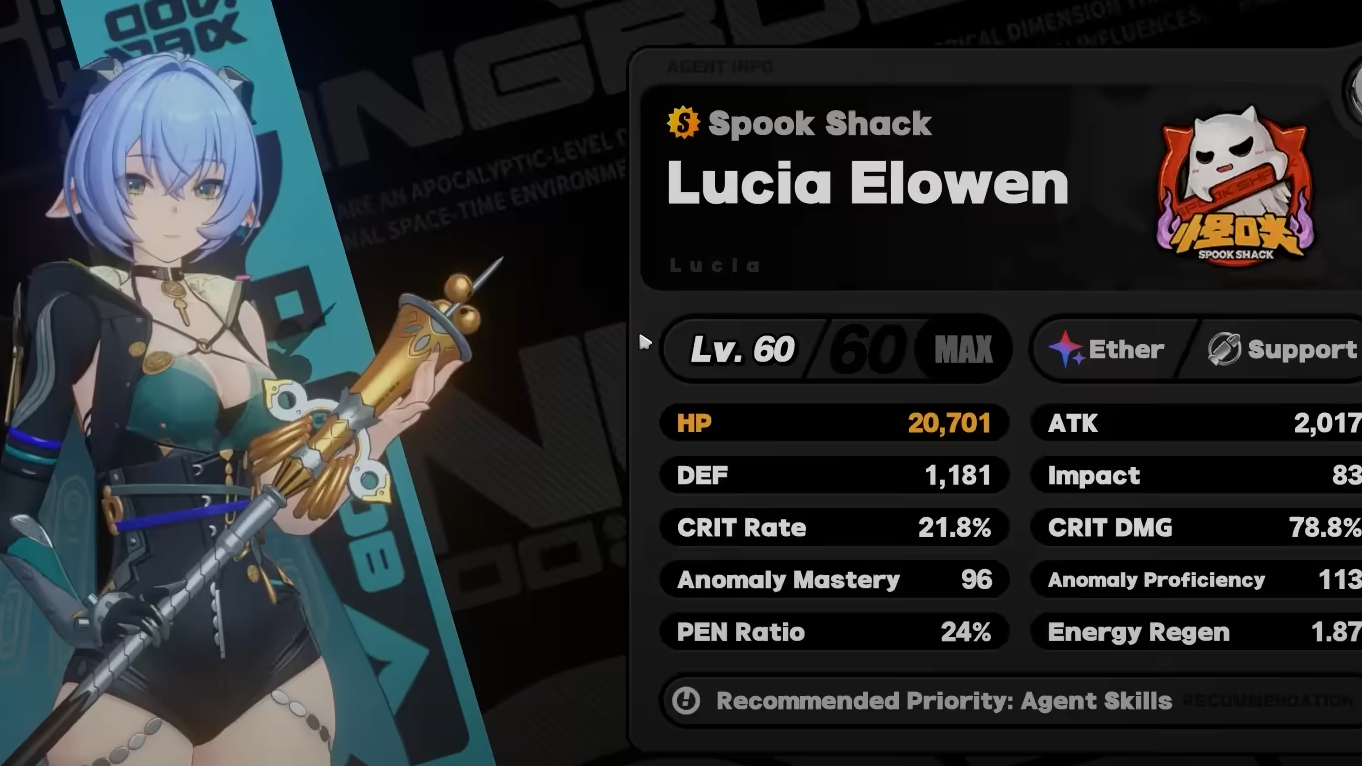 Lucia is an Ether Support built to supercharge squad damage while padding survivability. Her kit revolves around entering Ether Veil, handing out teamwide Sheer Force DMG buffs, and boosting Max HP. She slips cleanly into Rupture-centric teams — think Yixuan or Manato cores — and rewards simple discipline: trigger her EX/Ultimate to start the damage window, then rotate to your carries while her background Aftershocks keep pressure up.