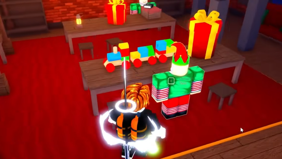 Step 2: Help the four elves around the toy factory. Their tasks include recovering a missing hat, cleaning wrapping paper, collecting ribbons, and hanging stockings on the workshop mantle. These are straightforward fetch-and-interact objectives around the immediate area.